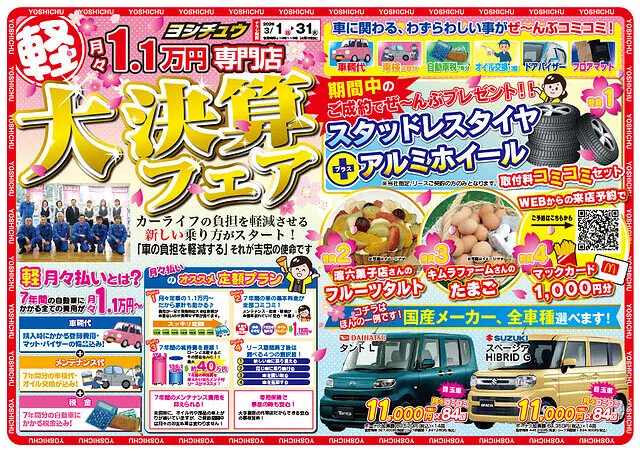 内 容: 期間中お車をご成約で最大4つの特典付き!
